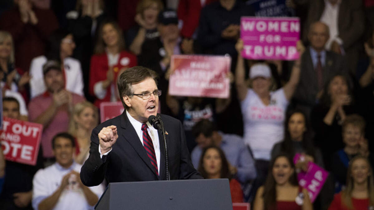 HOUSTON, TX - OCTOBER 22: Texas Lt. Governor Dan Patrick addresses the crowd before President Donald Trump took the stage for a rally in support of Sen. Ted Cruz (R-TX) on October 22, 2018 at the Toyota Center in Houston, Texas. Cruz, the incumbent, is seeking Senate re-election in a high-profile race against Democratic challenger Beto O'Rourke. (Photo by Loren Elliott/Getty Images)