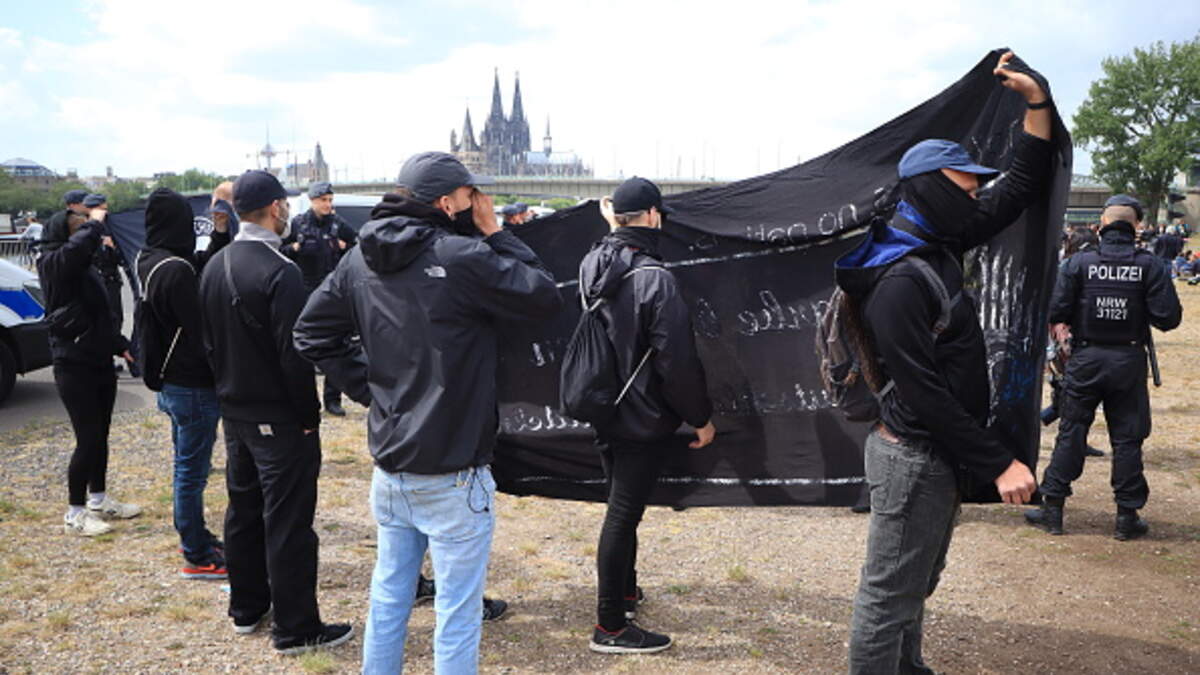 The authorities were called to action after 120 antifa counter-protesters, dressed in black hoodies, consistently ignored requests to steer clear of the "Vigil for the Basic Law" rally against the lockdown measures.