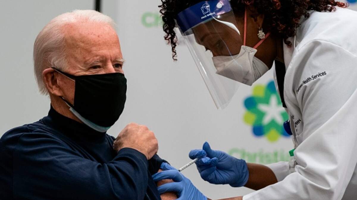 US President-elect Joe Biden receives a Covid-19 vaccination from Tabe Mase, Nurse Practitioner and Head of Employee Health Services, at the Christiana Care campus in Newark, Delaware on December 21, 2020. (Photo by ALEX EDELMAN / AFP) / The erroneous mention[s] appearing in the metadata of this photo by ALEX EDELMAN has been modified in AFP systems in the following manner: [Tabe Mase] instead of [Tabe Mase]. Please immediately remove the erroneous mention[s] from all your online services and delete it (them) from your servers. If you have been authorized by AFP to distribute it (them) to third parties, please ensure that the same actions are carried out by them. Failure to promptly comply with these instructions will entail liability on your part for any continued or post notification usage. Therefore we thank you very much for all your attention and prompt action. We are sorry for the inconvenience this notification may cause and remain at your disposal for any further information you may require. (Photo by ALEX EDELMAN/AFP via Getty Images)