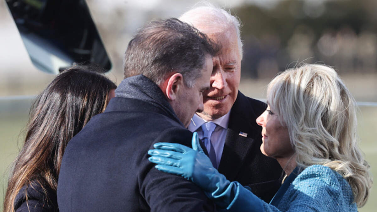 WASHINGTON, DC - JANUARY 20: U.S. President Joe Biden embraces his family after he was sworn in as the 46th President of the United States during his inauguration on the West Front of the U.S. Capitol on January 20, 2021 in Washington, DC. During today's inauguration ceremony Biden becomes the 46th president of the United States. (Photo by Jonathan Ernst-Pool/Getty Images)