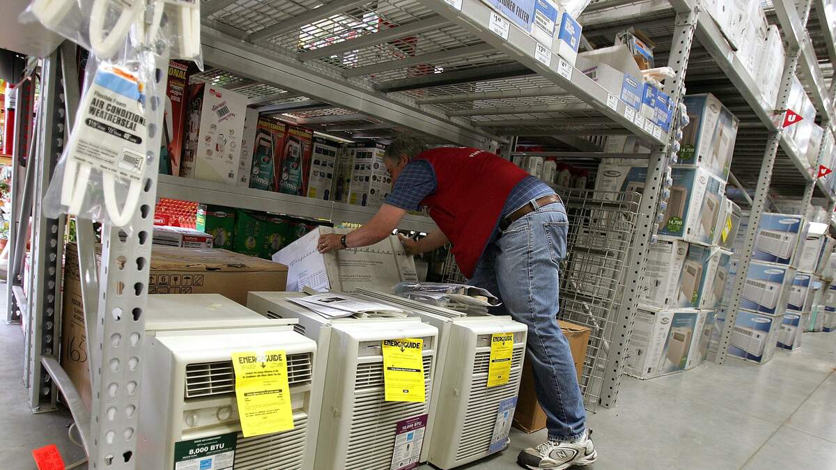 ARLINGTON HEIGHTS, IL - AUGUST 02: Customer Service Associate Doug Ferket checks stock of available in-window air conditioners at a Lowe's home improvement store August 2, 2006 in Arlington Heights, Illinois. With the heat wave blanketing much of the Midwest and now the East Coast, retailers have reported a spike in sales of air conditioners and fans. (Photo by Tim Boyle/Getty Images)