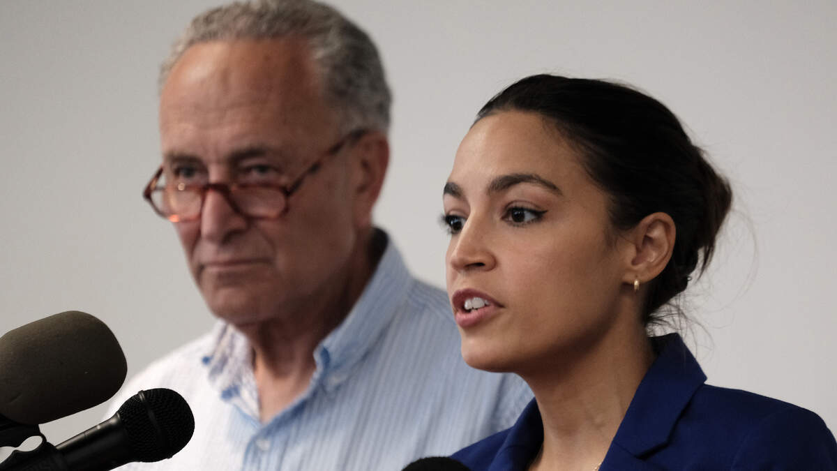 NEW YORK, NEW YORK - JULY 08: Rep. Alexandria Ocasio-Cortez (D-NY), Senate Majority Leader Chuck Schumer (D-NY) and Rep. Jerry Nadler (D-NY), hold a press conference on the Child Tax Credit (CTC) on July 08, 2021 in New York City. As part of the American Rescue Plan, Congress expanded the CTC in March so that families could get more relief and get it sooner. The first advanced checks will be sent to families next week on Thursday, July 15 and will be $250-300 per child. Families will receive these checks every month for the rest of 2021. (Photo by Spencer Platt/Getty Images)