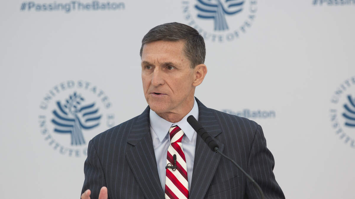Lieutenant General Michael Flynn (ret.), National Security Advisor Designate speaks during a conference on the transition of the US Presidency from Barack Obama to Donald Trump at the US Institute Of Peace in Washington DC, January 10, 2017. (Photo by CHRIS KLEPONIS / AFP) (Photo by CHRIS KLEPONIS/AFP via Getty Images)